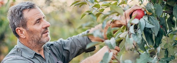 Le producteur sélectionne ensuite les fleurs de pommiers les mieux exposées à la lumière pour ne pas surcharger l’arbre et obtenir des fruits bien colorés et de bonne taille.