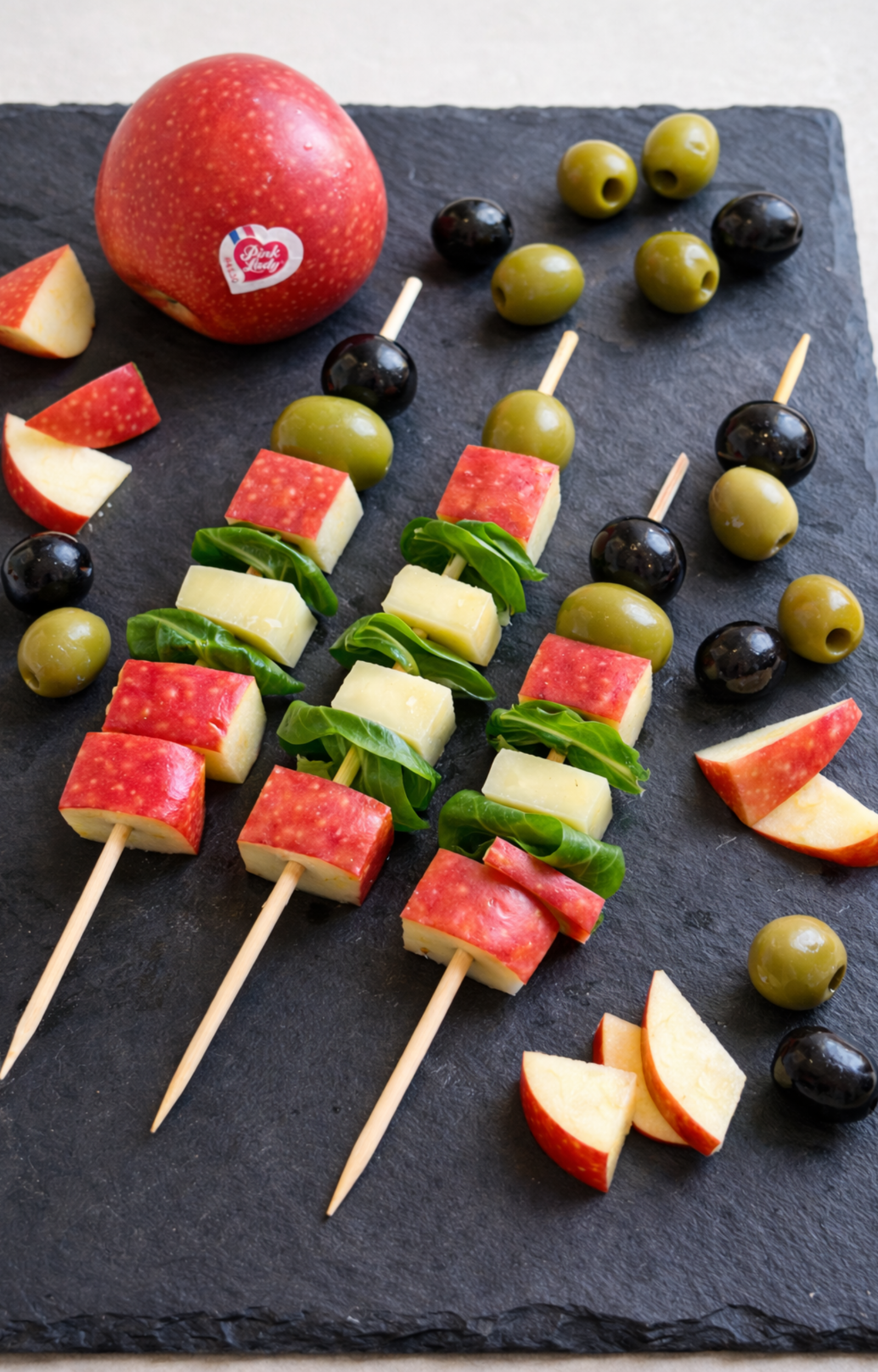- Pour réussir votre apéro healthy, accompagnez vos brochettes de pommes Pink Lady® de quelques toasts et de tapenades !