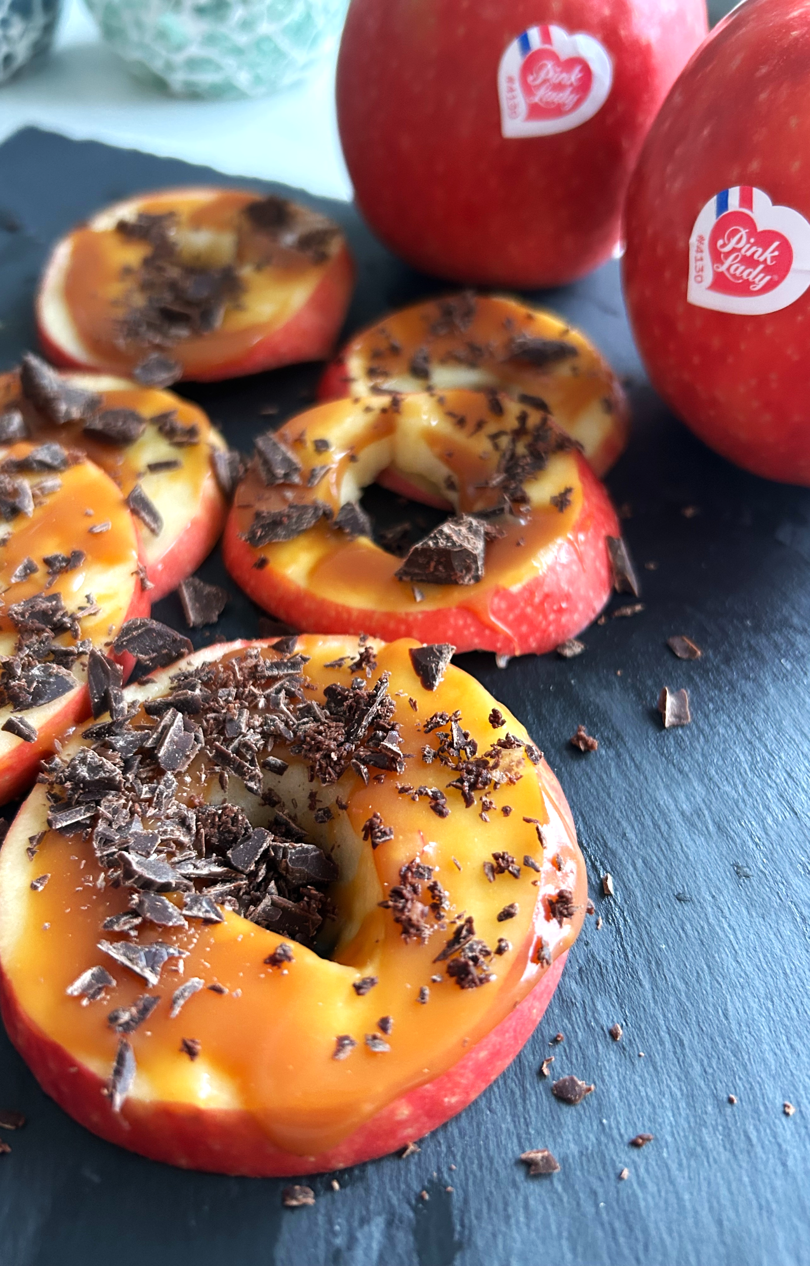- Déposez les rondelles de pommes sur une assiette ou une planche plate.