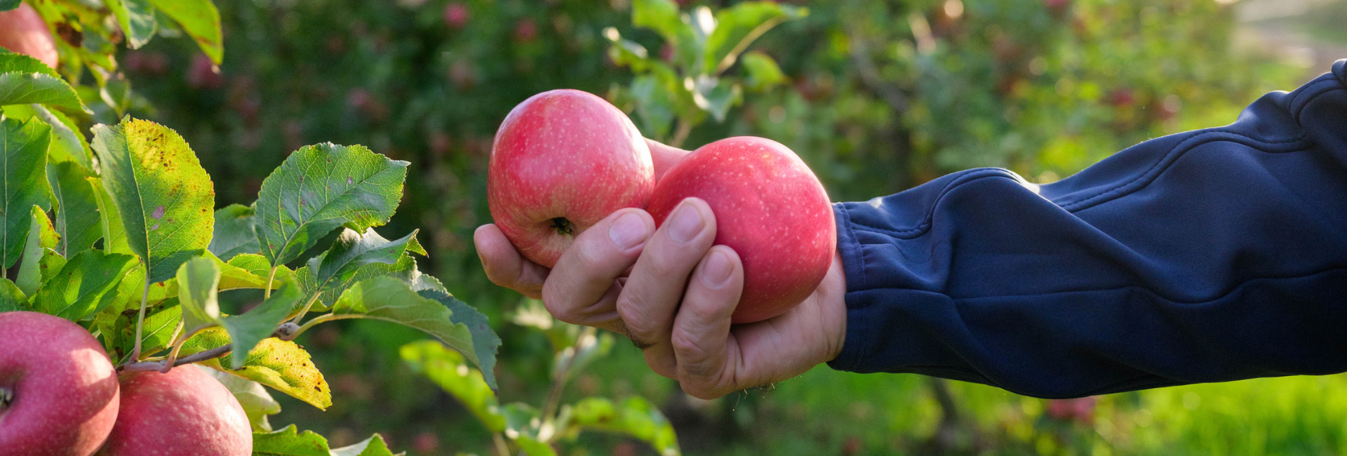 L’automne marque le retour de la cueillette de nos pommes Pink Lady®. Les producteurs récoltent le fruit de leur travail à la main et sélectionnent les pommes arrivées à maturité.
